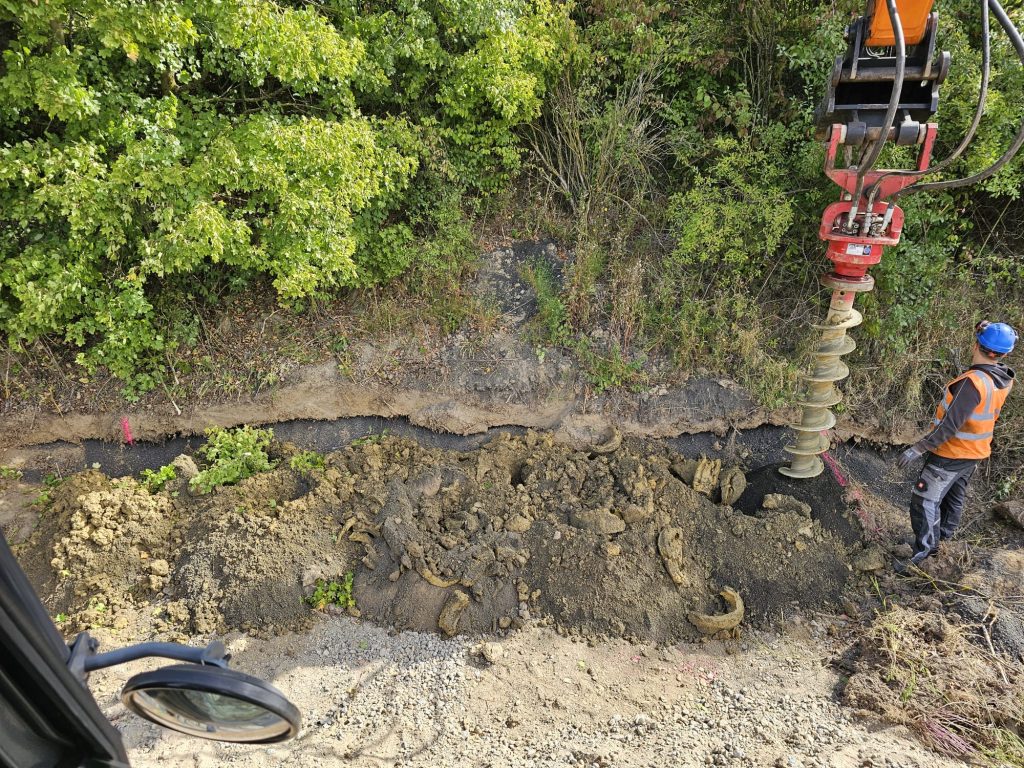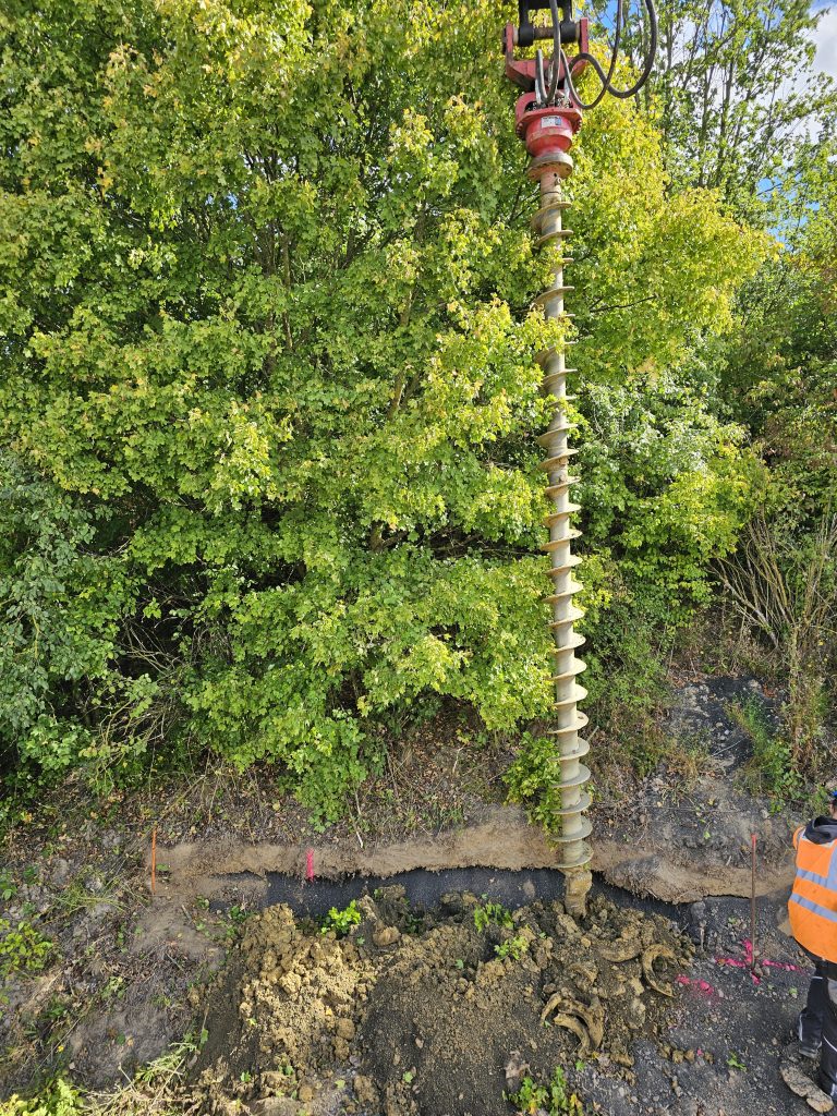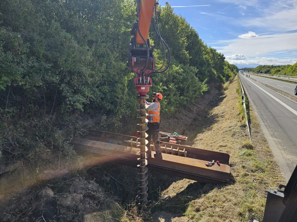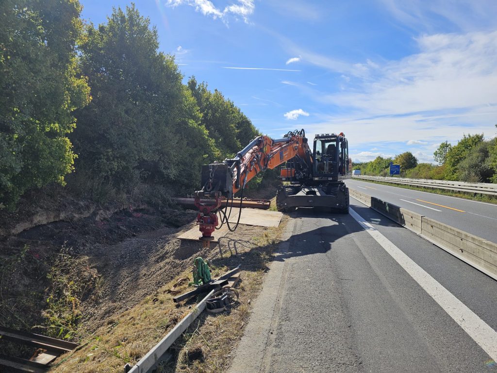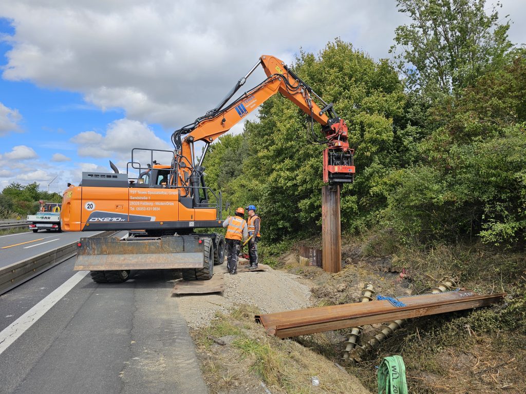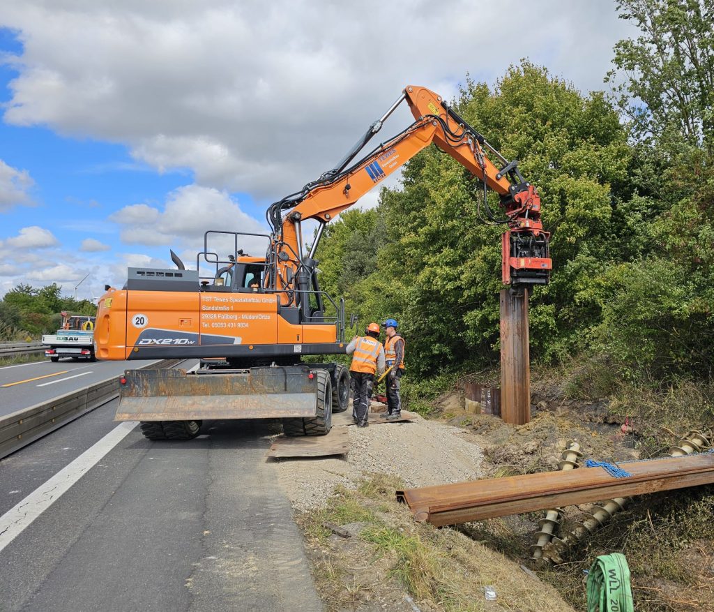 Bei unserer aktuellen Maßnahme entlang der A36 bei Flöthe wurde für die Baugrube ein Spundwandverbau mit 5,5 m langen Profilen hergestellt, um das umliegende Erdreich zuverlässig zu sichern.